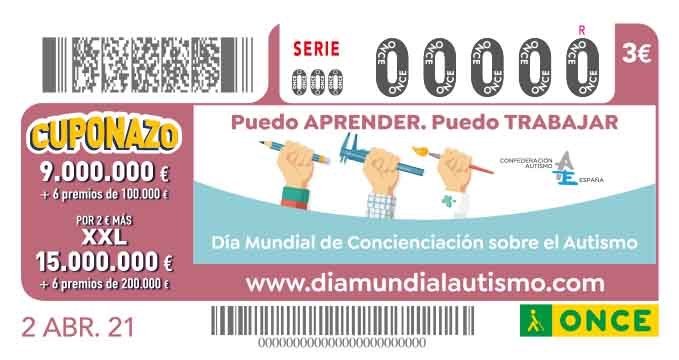El director general de Fundación ONCE hace entrega del cupón conmemorativo a la Confedereación de Autismo España, es recogido por el presidente de la misma