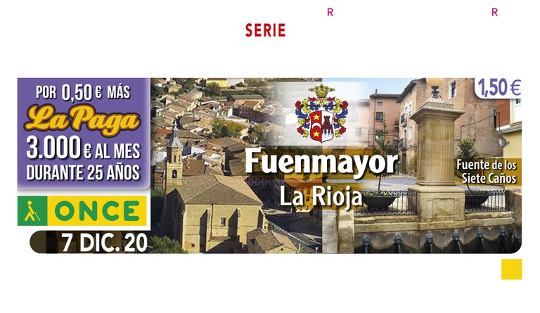 Presentación del Cupón dedicado a la localidad de Fuenmayor (La Rioja) con fecha de emisión 7 de diciembre, con la participación de la Delegada Territorial de la ONCE en esta Comunidad Autónoma y del Alcalde de la localidad.