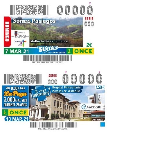 El delegado territorial presenta los cupones dedicados al Valle del Pas y al Hospital Universitario Marqués de Valdecilla. El Consejero de Industria, Turismo, Innovación, Transporte y Comercio del Gobierno de Cantabria recibe la ilustración correspondiente al cupón del 7 de marzo de la colección "Gentilicios curiosos” dedicado al Valle de Pas y el Consejero de Sanidad la del 10 de marzo de la colección "Hospitales: Tú eres importante" dedicado al Hospital Universitario Marqués de Valdecilla.