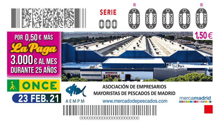 Acto de presentación del cupón que se ha dedicado a la Asociación de Empresarios Mayoristas de Pescados de Madrid (AEMPM) como reconocimiento a su labor diaria de distribución.