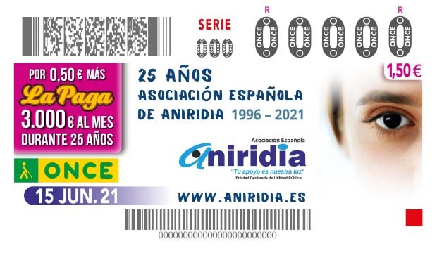 Imelda Fernández, vicepresidenta de Servicios Sociales y Participación de la ONCE entrega una reproducción del cupón dedicado al 25 aniversario de la Asociación ANIRIDIA a su presidenta Yolanda Asenjo