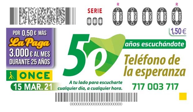 Imelda Fernández Rodríguez, vicepresidenta 4 de Servicios Sociales y Participación del Consejo General de la ONCE hará entrega de la reproducción del cupón al vicepresidente de Teléfono de la Esperanza, José María Jiménez