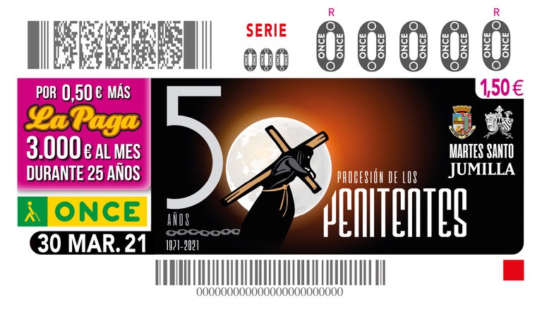 - Presentación Cupón dedicado a los 50 años de la procesión de los Penitentes de Semana Santa de Jumilla (Murcia, con fecha de emisión 30 de marzo.