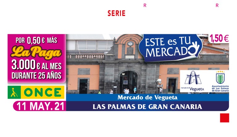 Presentación del Cupón de la ONCE dedicado al "Mercado de Vegueta" de Las Palmas de Gran Canaria, con fecha de emisión 11 de mayo, martes, dentro de la colección "Este es mi Mercado"