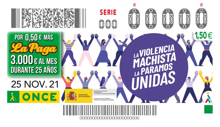 Presentación del cupón dedicado al Día Internacional contra la Violencia de la Mujer, cuyo eslogan "La Violencia machista la paramos unidas", aparece en los 5,5 millones de cupones del sorteo del día 25 de noviembre.