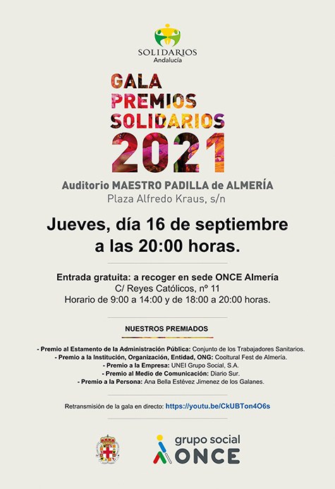 - Gala de entrega de distinciones a los ganadores andaluces, en las distintas categorías, de los Premios Solidarios "Edición Especial 2021"