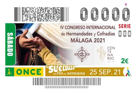 El director de la ONCE en Málaga, José Miguel Luque, presentará al presidente de la Agrupación de Cofradías de Málaga, Pablo Atencia, al presidente del Comité Organizador del Congreso, José Carlos Garín, y al de la Comisión Organizadora del Centenario, Luis Merino, el cupón correspondiente al sorteo del sábado 25 de septiembre de 2021 dedicado al "IV Congreso Internacional de Hermandades y Cofradías".