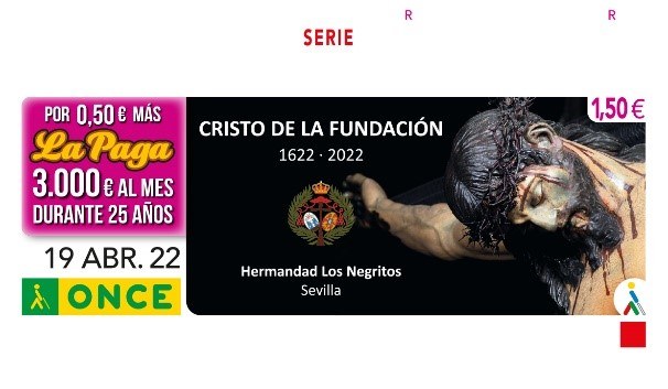 El delegado territorial y la presidenta del Consejo territorial de ONCE Andalucía, Ceuta y Melilla, presentan junto al alcalde de la Hermandad el cupón dedicado al Stmo. Cristo de la Fundación de "Los Negritos"