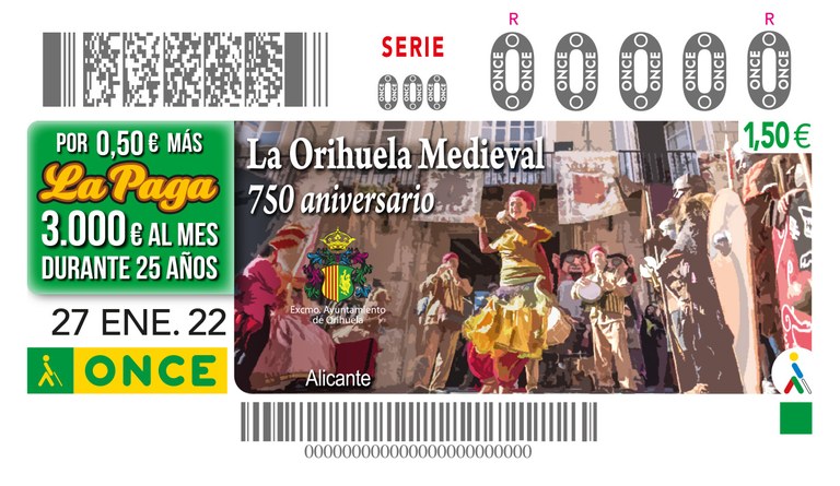 Presentación del Cupón dedicado a "LA ORIHUELA MEDIEVAL 750 ANIVERSARIO", con fecha de emisión 27 de enero.