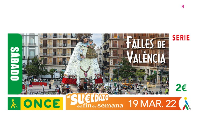 Presentación del Cupón dedicado a las "Falles de València" correspondiente al sábado 19 de marzo. Este año está dedicado al acto central de la Ofrenda Floral a la Virgen de los Desamparados.