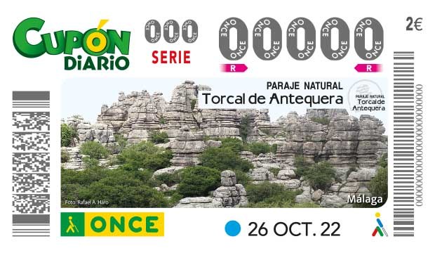 El director de la ONCE en Málaga, José Miguel Luque, y la director de la Organización en Antequera, Teresa Cobo, presentarán la imagen del cupón correspondiente al sorteo del miércoles 26 de octubre de 2022, dedicado al "Torcal de Antequera" al delegado territorial de Sostenibilidad, Medio Ambiente y Economía Azul de la Junta de Andalucía en Málaga, José Antonio Víquez y al alcalde de Villanueva de la Concepción, Gonzalo Sánchez Hoyos.