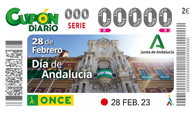 El delegado y la presidenta del Consejo Territorial de ONCE Andalucía, Ceuta y Melilla presentarán junto al consejero de la Presidencia, Interior, Diálogo Social y Simplificación Administrativa de la Junta de Andalucía el cupón dedicado al Día de Andalucía