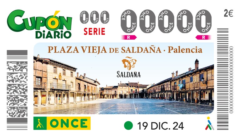 Presentación ante los MMCC de Palencia, del cupón que desde ONCE se dedica a la Plaza Vieja de Saldaña (Palencia), con la asistencia del alcalde de Saldaña, y otros miembros de la corporación municipal.