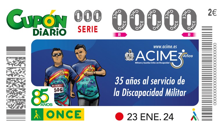 Alberto Durán, vicepresidente del Consejo General de la ONCE entregará una reproducción del cupón dedicado al 35 aniversario de ACIME a su presidente, Manuel Molinero