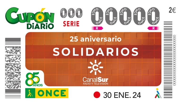 El delegado de ONCE Andalucía, Ceuta y Melilla y el director general de RTVA presentarán el cupón dedicado al 25 Aniversario del programa de Canal Sur "Solidarios". En el acto participarán entidades que han sido protagonistas de las distintas emisiones y el equipo del programa a lo largo de su trayectoria.