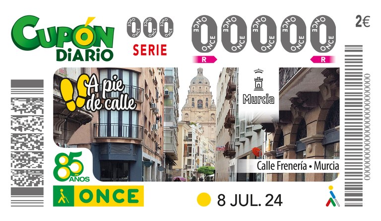 La ONCE dedica su cupón correspondiente al día 8 de julio a la Calle Frenería de Murcia, enmarcado en la colección de cupones "A Pie de Calle"