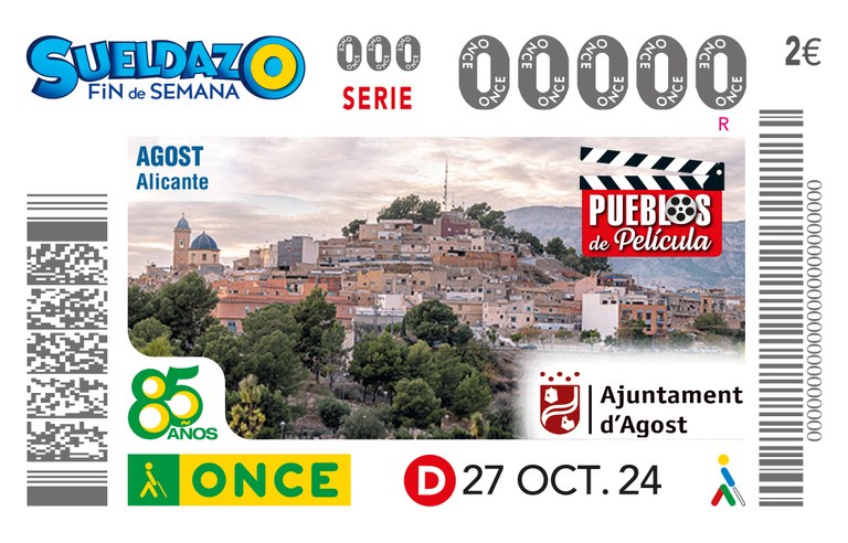 Agost, escenario del rodaje de ‘El retorno de los siete magníficos’, es la localidad protagonista del cupón de la ONCE del domingo 27 de octubre, perteneciente a la serie ‘Pueblos de película’.