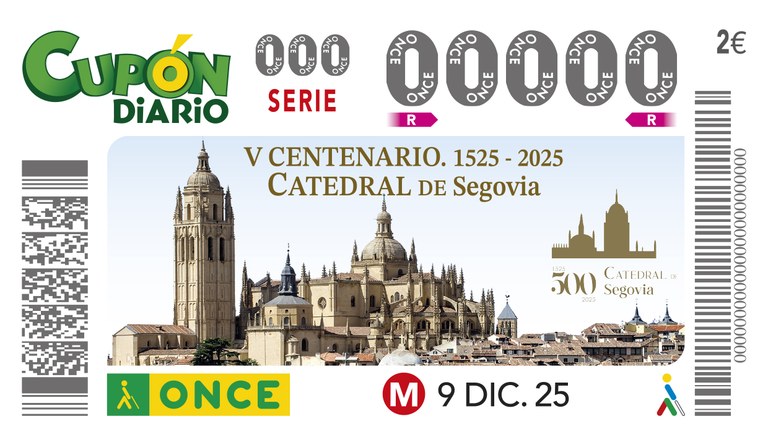 El vicepresidente del Cabildo, Ángel Miguel Alonso Arranz, el delegado de ONCE en Castilla y León, Ismael Pérez Blanco, y el obispo de Segovia, Jesús Vidal Chamorro, presentarán este cupón en un acto que tendrá lugar en la propia Catedral, y en el que estarán acompañados por el director de ONCE en Segovia, Claudio Congosto, y la consejera territorial de ONCE, Mª Luz Hernández.