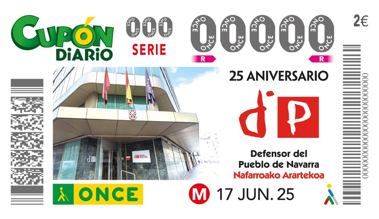 Entrega del cupón enmarcado Entrega del cupón enmarcado con motivo de la celebración del XXV aniversario de la Ley Foral del Defensor del Pueblo a D. Patxi Vera Donázar, Defensor del Pueblo de la Comunidad Foral de Navarra
