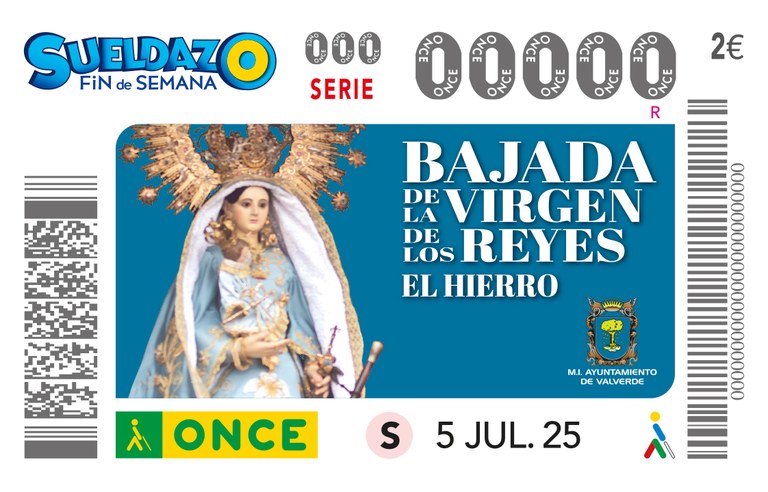 Presentación del cupón dedicado a la bajada de la Virgen de los Reyes de la isla de El Hierro, con fecha de edición 5 de julio de 2025.