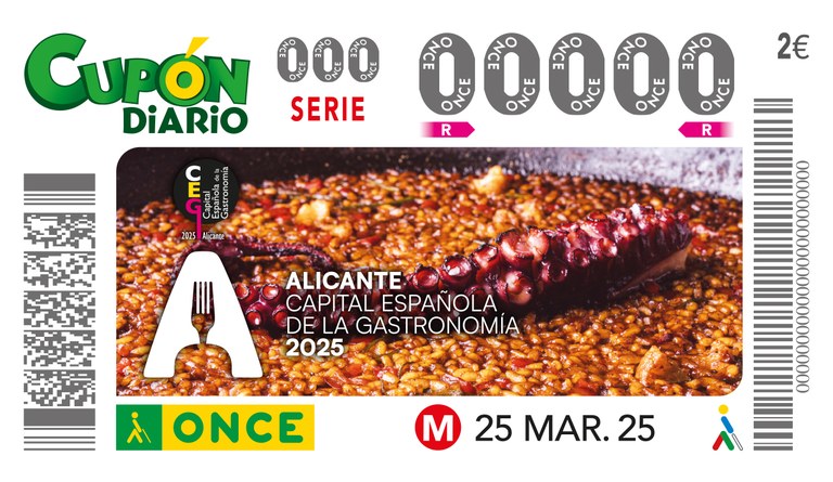 Alicante Capital Española de la Gastronomía 2025 es el motivo del cupón de la ONCE del martes 25 de marzo