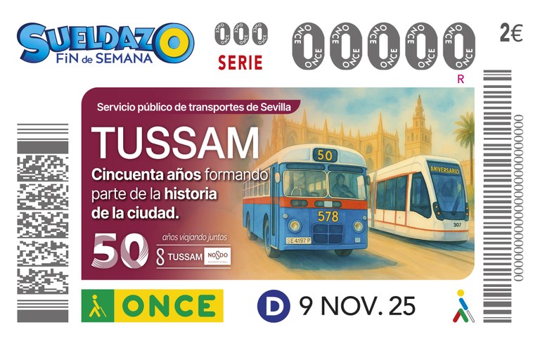 El delegado y la subdelegada de ONCE Andalucía, Ceuta y Melilla presentarán junto al delegado de Parque Innovadores, Movilidad, Economía y Comercio y el gerente de TUSSAM, el cupón dedicado al 50 Aniversario de esta empresa, Transportes Urbanos de Sevilla, SAM