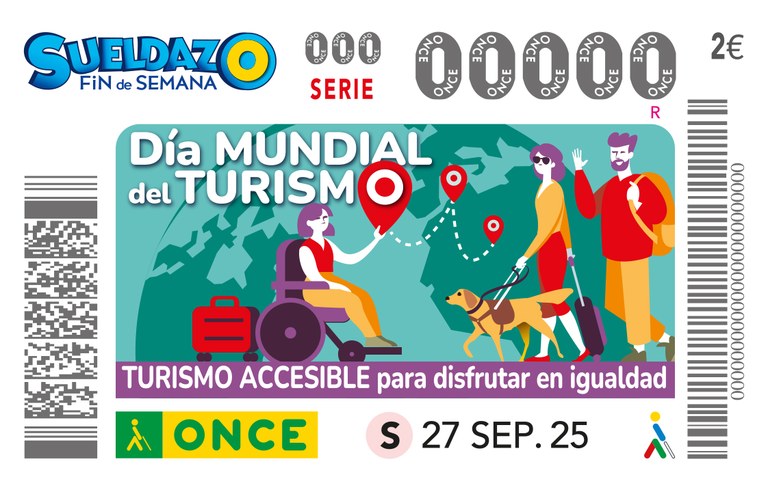 El director de la ONCE en Málaga, Marcelo Rosado y la directora del Hotel Ilunion Málaga, Mar Almagro, presentan al delegado territorial de Turismo, Cultura y Deporte de la Junta de Andalucía, Carlos García y al teniente alcalde de Turismo y promoción de la ciudad del Ayuntamiento de Málaga, Jacobo Florido, el cupón correspondiente al sorteo del día 27 de septiembre de 2025 dedicado al "Día Mundial del Turismo"